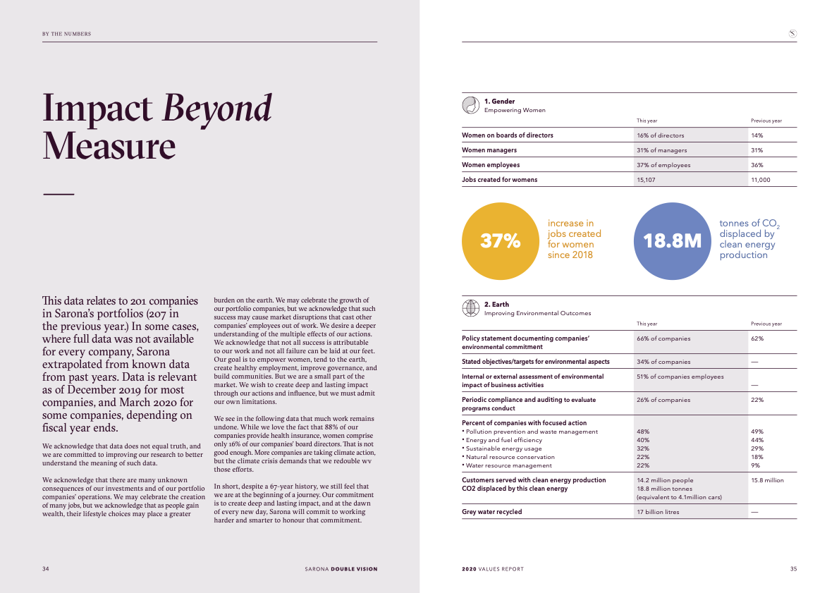 Since 2017, Sarona has released an annual Values Report called Double Vision. The report outlines their initiatives, expertise, commitment, impact, and the associated data. They’ve released some great-looking reports over the years, but a particularly impressive report is theirs from 2020.