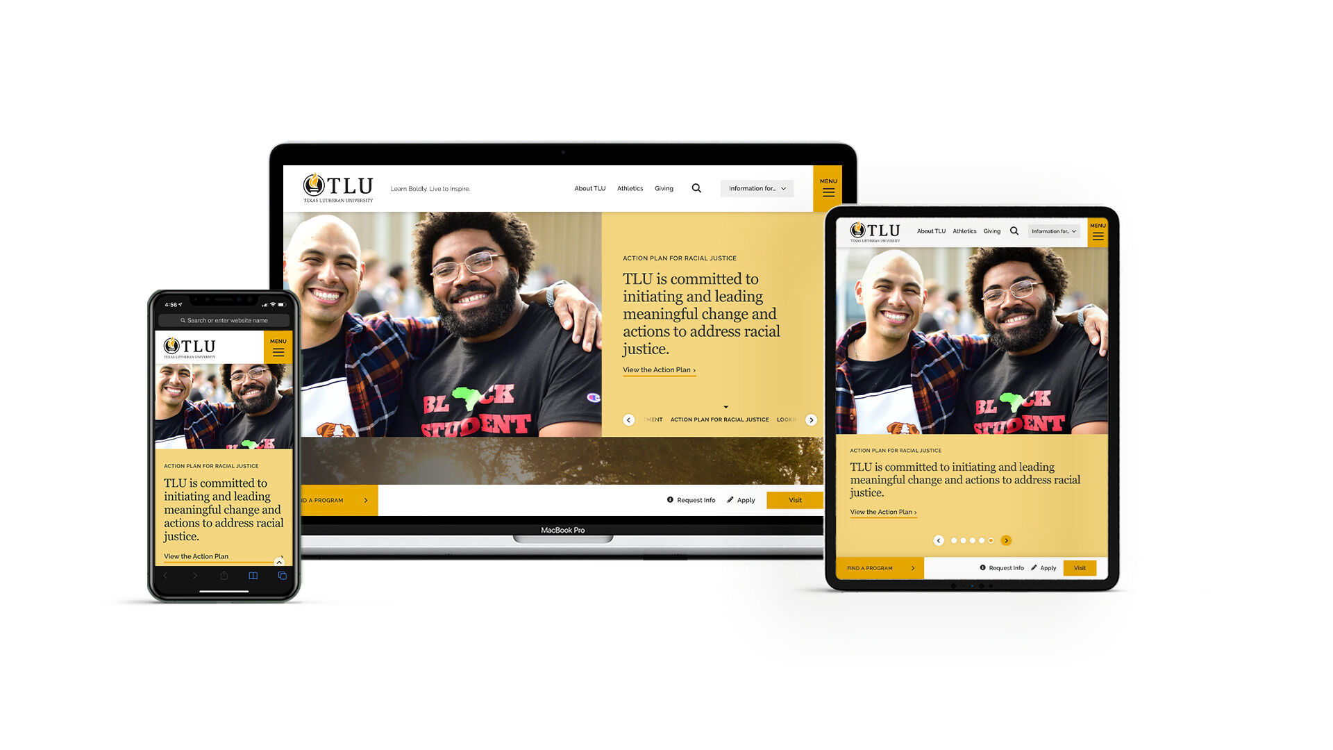 Many first-generation students at TLU deal with feelings of imposter syndrome. So we wanted the website to create a feeling of belonging and inclusiveness by using authentic, custom photography throughout the new website, starting on the homepage.